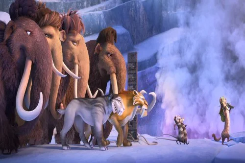 The major problem with this is movie is the same problem I had for the past 2 movies [yes I like the Meltdown], a good script. There is no sense of story with any of these films except that, we need to get to either point A to point B to get back to point A in the end but each character has to go through something like we care anymore about their problems by this point. It’s as if the screenplay was written by some writers of a network TV sitcom because the problems Sid, Manny, and Deigo have in this film is similar to an episode to How I Met Your Mother. There’s a scene where the trio is at a bar like spot drinking talking about their issues. Granted its funny for the moment but you remember this is supposed to be the Ice Age That is how weak the screenplay is, especially since this consisted of three writers. And not only three writers with different backgrounds, but writers that all contributed to least one Ice Age film.