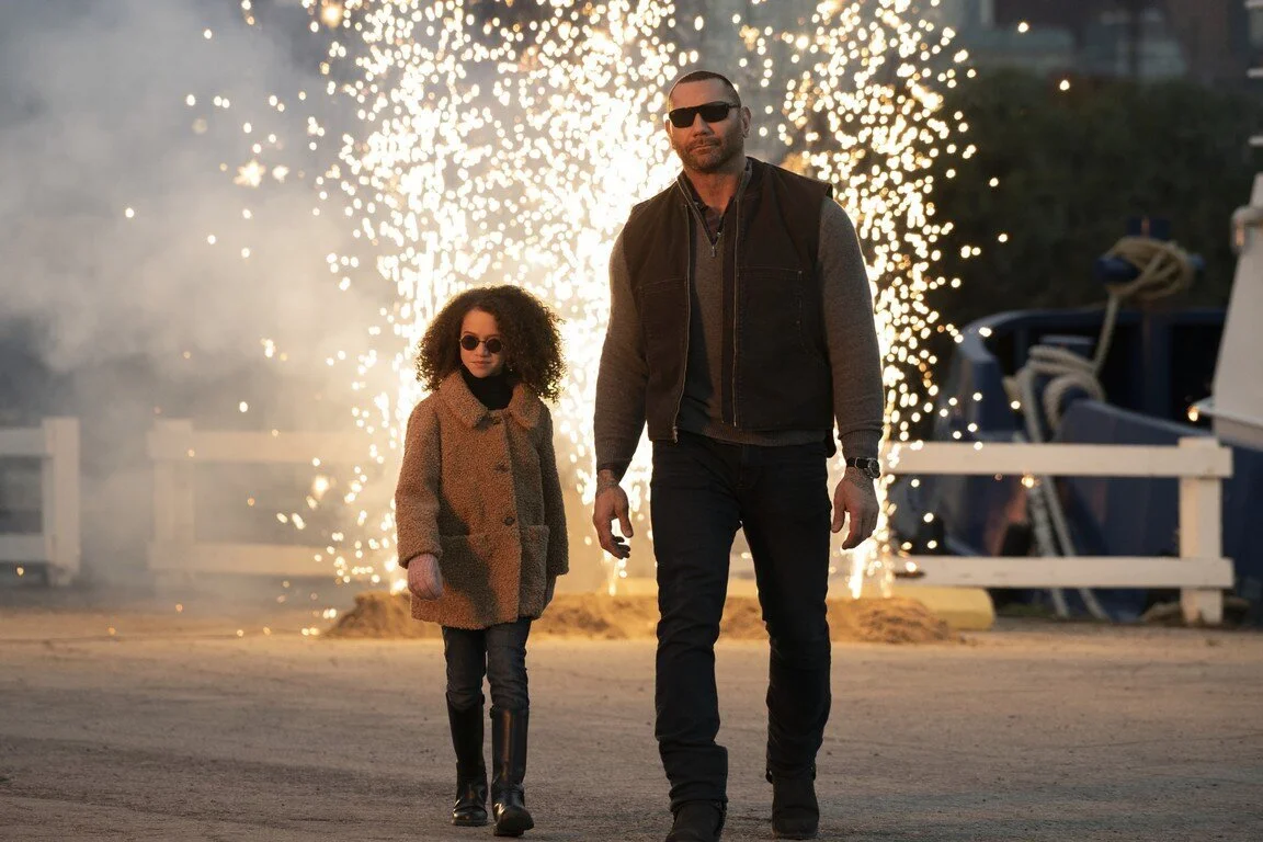 In terms of recent Dave Bautista buddy comedies, this might be his best one yet. The dynamic he shares with some of his co-stars is funnier than what he had with Kumail Nanjiani in that lame comedy, Stuber. He’s leaning heavy into his “Drax the Destroyer” shtick, for he exudes that macho, hard-boiled exterior where his weird dialogue through deadpan delivery garners laughs. Most of the comedy relies on setting him up to have an exaggerated reaction despite his stern, joyless expression. As far as comedies go, that seems to be the only persona he can tackle, but his co-stars balance the dynamic. One of those co-stars is Chloe Coleman. I’ve never seen her before, so I assume that this is her debut role, but she’s really good. She doesn’t play up the cutesy tactic but instead challenges Bautista with her sass. The moments they share as they shoot the shit are the stronger parts of the film. Her delivery often cracked me up. The two have a fun dynamic that holds the picture together.
