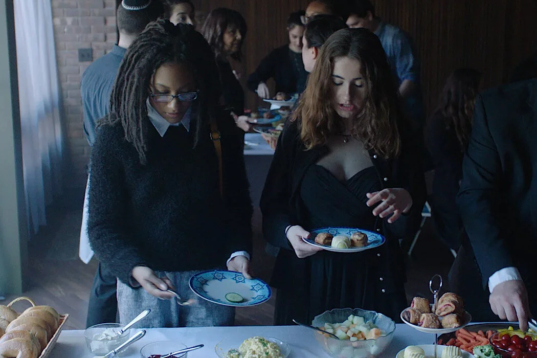 The film centers on best friends Carrie (Madeline Grey DeFreece) and Hannah (Rachel Sennott), two Hebrew school teenagers who attend the funeral of one of their fellow peers. Mild-mannered Carrie feels a sense of false grief in the air through the sudden despair from her classmates while self-centered Hannah is set on getting with a classmate she’s crushing on. When Hannah convinces Carrie to kiss her as “practice,” a major shift occurs in their friendship.