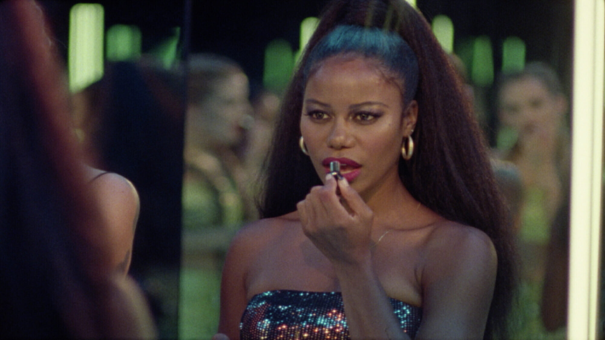 While making it such an endlessly stylish experience set in contemporary time (well, when Vine was alive), Bravo presents it in an ‘80s noir manner, varying from the title cards to poppy hypnotic fantasy sequences to the fact that it was shot on film. I’m mostly sure it was shot on film, which perfectly fits the aesthetic. Also, what truly brings this narrative to life is the charismatic ensemble who all bring such a huge bravado of energy. As the titular character, Taylour Paige is great. This is my first time seeing her in a feature and she bursts with such onscreen presence and class. Paige is positioned as the audience’s avatar, as she guides their way through the entirety of the stressful journey that you just wanna hold her hand all the way through. She delivers such a relatable state of completely “doneness” that alludes to so many hilarious moments. I’m unfamiliar with most of her work, but I feel this is a decent breakthrough performance for her and I’d love to see more of her in future features. A major supporting standout is Colman Domingo who portrays a Nigerian pimp named X. He’s completely intimidating but has so much fun chewing up the scenery with such chaotic energy that you can’t keep your eyes off of him.