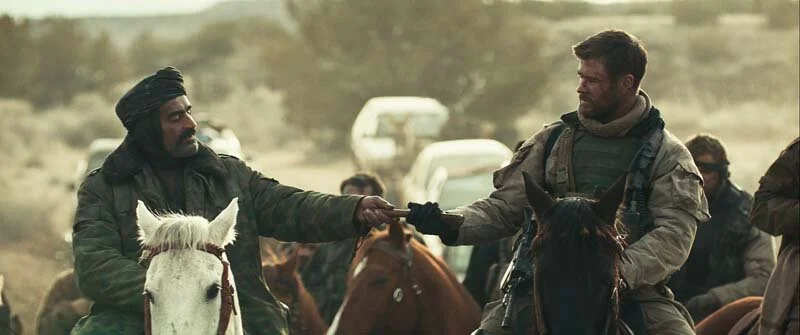 Hemsworth does a fine job in the leading role where he gives inspirational speeches and gives orders to his crew. His character may be bland but what gives him a bit of depth is overtime he interacts with General Abdul Rashid Dostum played by a phenomenal Navid Negahban who helps them and their team fight against the Taliban. The electric chemistry between Navid Negahban’s chemistry with Chris Hemsworth elevates the film as a whole to be pretty entertaining. He is their guide of Afghanistan, and he’s pretty great. He knows the ins and outs of the land and has a vast sense of wisdom.