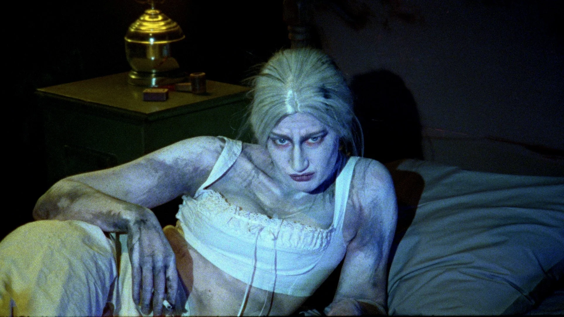 Dead Lover was filmed in a studio rather than on location, and the passion is reflected in the sets, production design, and lighting, giving the film a theatrical feel. It's so similar to Shelley Duvall's Faerie Tale Theatre in the sense that its limited cast is hamming on these handcrafted practical sets, enacting a classic story with a unique gothic flair that feels like a storybook coming to life. In this case, it’s a storybook you wouldn't want a kid to pick up. I was impressed by the spooky atmosphere created through smokescreen, costume designer Courtney Mitchell's macabre-themed 17th-century wardrobe, and Gravedigger's makeup. It's fairly limited in locations, but Glowicki makes the most out of it, like a masterclass in resourcefulness. Taking the principle of "less is more" into consideration and incorporating a masterpiece theater flair, this production happily capitalizes on its low-budget indie status. Its visual style felt refreshing, keeping you intrigued about its unique approach.