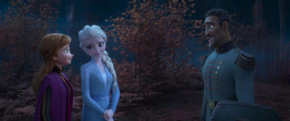Frozen came out during a year where the animated feature film game was weak and it delivered a clever twist for the studio known best for their princess features. For the well-earned message it delivered and what it represented for both Disney Animation and storytelling, it rightfully struck gold. But since it did strike gold and become a worldwide phenomenon, this was an easy obligation. Regarding script and music alone — two major elements — it doesn’t carry anything remotely of its own weight. Similar to Disney Animation’s previous feature, Ralph Breaks the Internet, the story sets out to expand the universe of the world they built and doesn’t feature an antagonist of some sort. But the Ralph sequel managed to triumph because it was able to exhibit the evolution of the friendship between Ralph and Vanellope right when they’re reintroduced and the writers were able to craft a well-developed narrative that challenged their relationship. There’s not much of a conflict nor a genuine challenge for Anna and Elsa’s relationship. Their sisterhood and the love between the two are present and much stronger, for it does make for some good heartwarming scenes, but the conflict between them feels out logistically out of character for them both. Their conflict is primarily centered on Anna being co-dependent of Elsa to an extent that she becomes overprotective, unwilling to trust her when she impulsively takes action and makes decisions on her own. Anna is the powerless one and doesn’t trust Elsa to go on this journey to find herself on her own when she already knows what she’s capable of. Their conflict, or lack thereof, feels entirely incomplete, for it doesn’t really challenge them to seek growth. This movie’s idea of character growth is literally a costume change in a musical number.
