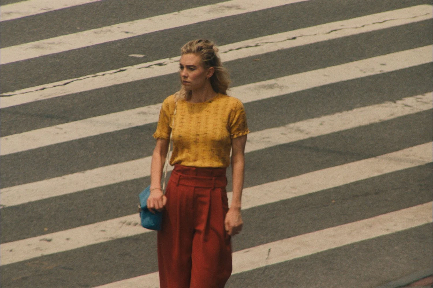 Academy Award-nominated actress Vanessa Kirby (ugh, sounds so good to say) commits to this role so damn brilliantly. It’s a solo vehicle that has her moseying around NYC and sometimes you believe she is, in fact, in a fugue state. No matter how I feel about how the character herself is written, I must commend Kirby for playing it so consistently grounded and earnest. The way she interacts with other people, especially with the newcomer teenage actors she surrounds herself with, makes it hard to guess if her dialogue is scripted or not. There’s grade A New Yorker energy in this film, ranging from dining in a Chelsea Papaya Dog to taking a piss in an outdoor alley. For a major solo vehicle riding off interactions with various unknown actors, Kirby does a fantastic job carrying the film.