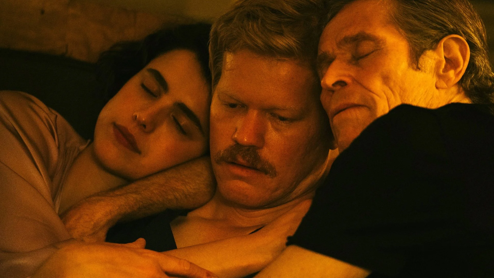Kinds of Kindness is an anthology series of three 45-minute stories about people in precarious situations, trying to take control of their complicated lives. The first story, “The Death of R.M.F.” sets around Robert (Jesse Plemons), a man living a lavish life with his wife Sarah (Hong Chau), who’s picked out for him by his sugar daddy boss Raymond (Willem Dafoe). When Raymond cuts him off over a botched assignment, Robert has to learn how to live independently. The second tale, "R.M.F. is Flying," tells of a cop named Daniel (Plemons) who is grieving over the disappearance of his wife, Liz (Emma Stone), being a downer to everyone around him, including his best friend Neil (Mamoudou Athie) and Neil’s wife Martha (Margaret Qualley). When Liz returns, Daniel senses something’s off about her and tries to get to the bottom of it. Lastly, "R.M.F. Eats a Sandwich" follows Emily (Stone) and Andrew (Plemons), cult members trying to find a person who has harbored the power of resurrection.