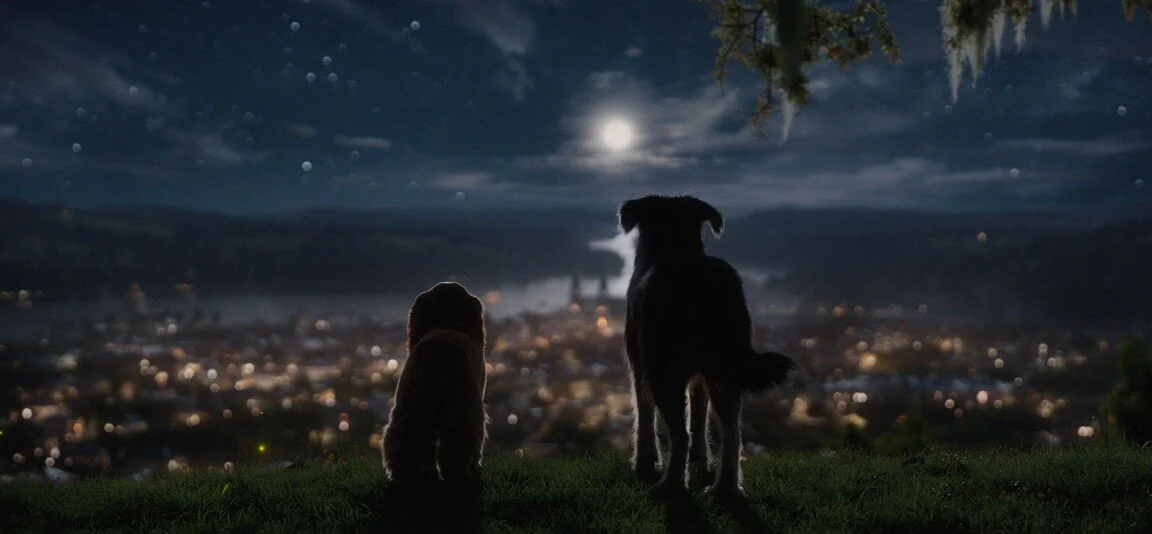 Since I did spark this discussion, making comparisons to 2019’s The Lion King remake, I’m glad this didn’t take the photorealistic route when it came to the talking dogs. Clearly, the animal’s movements are CG and it’s way too visible through closeup shots when they’re delivering their dialogue or doing some unrealistic actions, but thank God they’re expressional. Unlike The Lion King, these animals are given facial expressions that match the characters’ dialogue, even making some of the recreational scenes actually effective. The spaghetti scene as a whole is relatively charming and they still capture the emotional beats through the dogs’ expressions. No, they don’t live up to the hand-drawn original and some sequences aren’t as effective as the animation, but some of it works effectively.