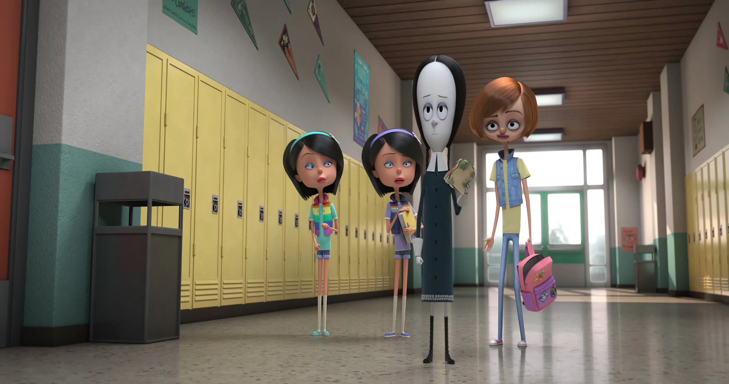 While I am complementing the designs of the Addams, all the designs of the supporting characters are even more unpleasant to look at than theirs. They don’t look as completely rendered as the family. Their styles may be more harmonious, which is the intention, but it’s waaaay too simple and weird. Like, I get that they don’t have the same budget as high-profile studios, but the designs of the conformed normal characters are just… ehhhhh, generic, on par with a cheaply-produced CG series that airs on Nick.