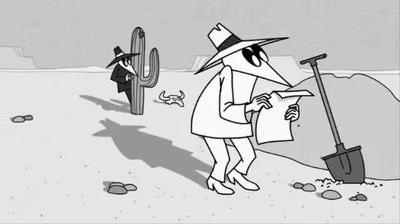 As the opening title sequence occurs, the audience is treated to a 2D cut out animated sequence of Hathaway and Wilson fighting in a Spy vs. Spy style.
