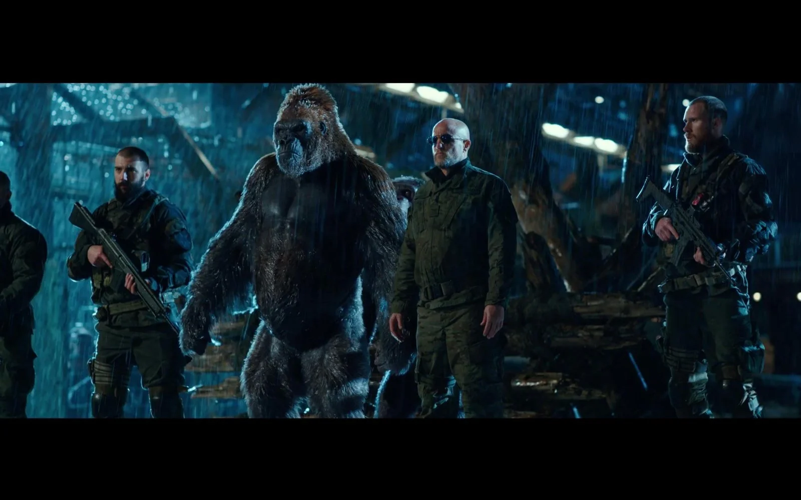 Ever since Rise, I haven't seen these apes as performers in motion caption suits, but fully genuine fleshed out characters. These effects are so damn spectacular that I keep thinking these Apes are the actors. When Caesar is interacting with Woody Harrelson’s Colonel, those scenes are constructed so well that you believe Caesar was a real being that Harrelson was trying to belittle.